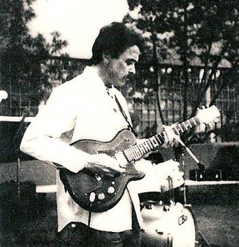 My counter-offer was hardly a momentary impulse. The notion of creating a movie soundtrack was a fantasy stemming from childhood and my innate attraction to instrumental music. Very early on it was the music in the movies I saw that interested me most, the Disney movies especially – the “Sorcerer’s Apprentice” from Fantasia remains one of my all-time favorite pieces of music. I realized early on that it was the haunting soundtracks that made the old horror movies seem so spooky and lent mystery and otherworldliness to early science fiction movies and television shows like The Outer Limits and The Twilight Zone. The birth of rock and roll (and yes, I was around when that happened) had a huge impact on me, and I was soon picking out songs I heard on the radio on a cast-off Sears and Roebucks guitar. Surf music became a big thing in my town not long afterward. And there it was, all my music loves rolled into one: instrumental rock music! I was off and running, playing guitar instrumentals by The Ventures, Dick Dale and the Deltones, and Duane Eddy. I thickened my finger calluses on songs like Booker T. and the MG’s “Green Onions” and Link Wray’s “Rumble.”
