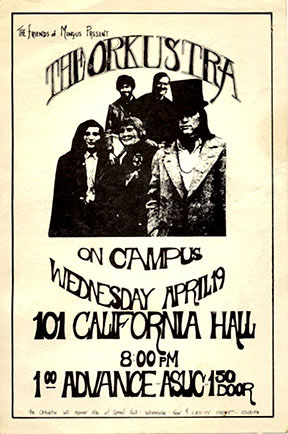 What has this to do with The Orkustra? Quite simply, everything. Only in that brief and unique period in San Francisco’s history could a band like The Orkustra have been brought into being, for it was as much an expression of the times and the environment as it was an expression of the collective imaginations of the band’s members.