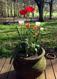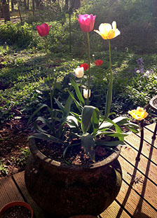 Barbara spent her last day in the world planting flower bulbs, including these tulips she planted in a big ceramic pot. "I'll never forget watching her plant these little gifts for us. A perfect reminder